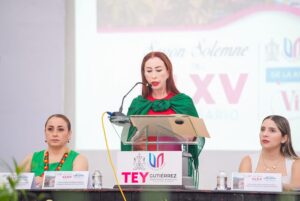 Villa de Álvarez, Col.- En la conmemoración por el 165 aniversario de la asignación del nombre de Villa de Álvarez al municipio, la Presidenta Tey Gutiérrez Andrade exhortó a las y los villalvarenses dar lo mejor, esto por la grandeza y gloria del municipio.