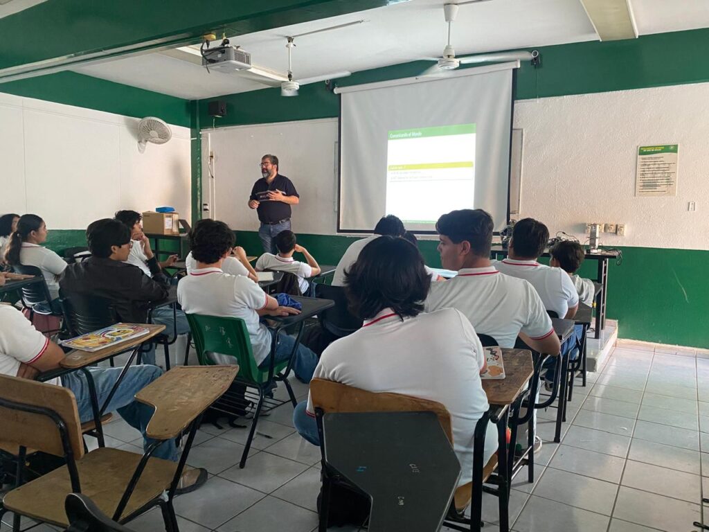 Estudiantes de cuarto semestre del Bachillerato 25, ubicado en Comala, mostraron gran interés en los proyectos que desarrolla la Facultad de Ingeniería Mecánica y Eléctrica (FIME), sobre todo en los prototipos de electrónica, telecomunicaciones y robótica. La charla fue impartida por el maestro José Luis Álvarez Flores, promotor del área en la Universidad de Colima.