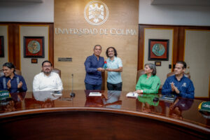 Los recibió el rector de la Universidad de Colima, Christian Jorge Torres Ortiz Zermeño, en la sala de juntas. El rector les aseguró que su estancia será enriquecedora y que es el inicio de “una relación que tendrá continuidad en las universidades mexicanas”.