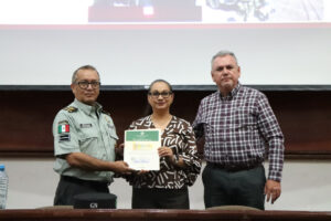 Durante su charla, el general Guzmán habló sobre la estructura operativa de la Guardia Nacional en Colima, que cuenta con siete compañías distribuidas en municipios como Tecomán, Armería, Manzanillo y Coquimatlán, además de una coordinación de vías de comunicación que supervisa carreteras y aeropuertos. Asimismo, destacó la importancia de la capacitación constante del personal, que incluye cursos en derechos humanos, manejo de armamento y atención al público.