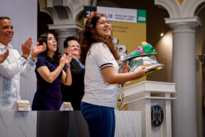 Erandy Bracamontes Luna, alumna del bachillerato 33 de Villa de Álvarez, ganó el primer lugar de la final del XIV Concurso de Lectura en Voz Alta, llevado a cabo en la Pinacoteca Universitaria, en el marco de la Feria del Libro Altexto 2026 de la Universidad de Colima.