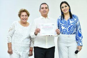 Al terminar la conferencia, se abrió un espacio de diálogo. Por último, la presidenta de Mujeres Agentes del Cambio Colima, AC, Pastora Fernández Lepe y la vocal ejecutiva de la Junta Local del INE Colima, Ana Margarita Torres Arreola, entregaron una constancia al rector Christian Torres Ortiz por su participación en el Seminario.