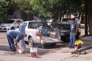 ++También se realizó la aplicación de soldadura, en la alcantarilla en el cruce de Guillermo Prieto esquina Gabino Barreda