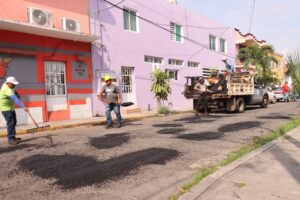 El ayuntamiento de Colima que preside el alcalde Riult Rivera a través de la Dirección de Mantenimiento y Conservación, continua con los trabajos de bacheo en las diferentes vialidades de la capital del Estado.