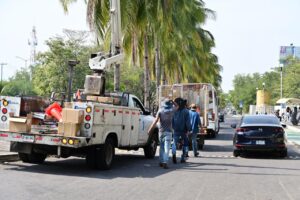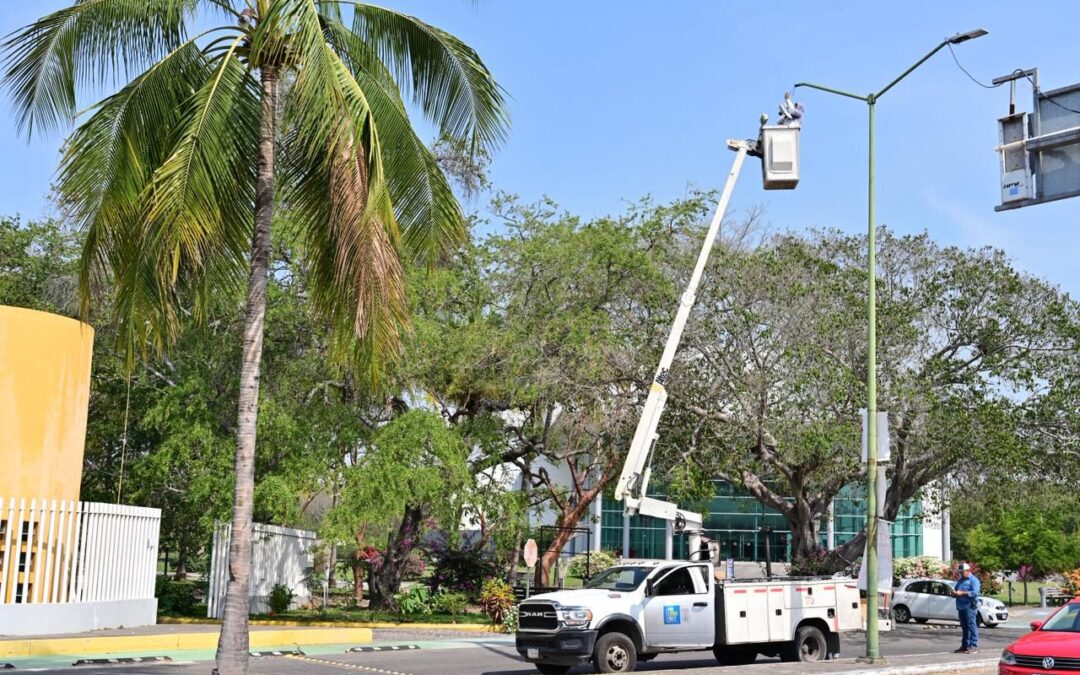 ++Por indicaciones del presidente Riult Rivera, la cuadrilla de Alumbrado Público sustituyó luminarias de color azul/morado por luz blanca LED en la avenida Camino Real.