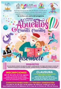 Villa de Álvarez, Col.- La Presidenta Municipal de Villa de Álvarez, Tey Gutiérrez Andrade, presentó las convocatorias para la tercera generación de los programas “Había una vez Abuelitos Cuenta Cuentos” y el de “Niñas y Niños Contadores de Historias”, que buscan continuar con las políticas públicas de promoción y fomento a la cultura.