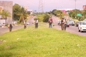 A pesar de las lluvias de la temporada, que favorecen el crecimiento acelerado de la maleza, el personal de Parques y Jardines trabaja de manera constante en diferentes puntos de la ciudad, atendiendo de forma oportuna las necesidades que se detectan en parques, jardines, camellones y áreas comunes.