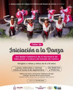 El lunes 8 de septiembre próximo comenzará la nueva edición del taller de Iniciación a la Danza del Ballet Folklórico de la Secretaría de Educación y Cultura del Gobierno del Estado de Colima, dirigido a infantes de seis a diez años de edad que deseen aprender los conceptos básicos de esta disciplina artística.