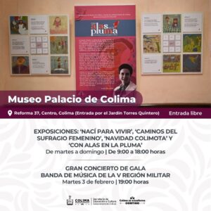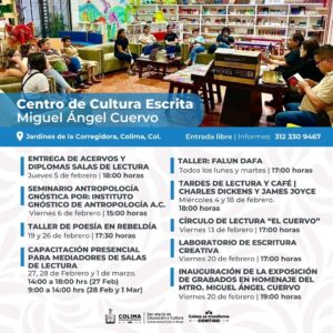 La Subsecretaría de Cultura del Gobierno del Estado de Colima comparte la agenda de febrero, en la que ofrece más de medio centenar de eventos artístico y culturales, entre talleres gratuitos, charlas, exposiciones museográficas, conciertos, así como funciones de teatro y danza, a realizarse en los doce recintos públicos que administra esta dependencia.