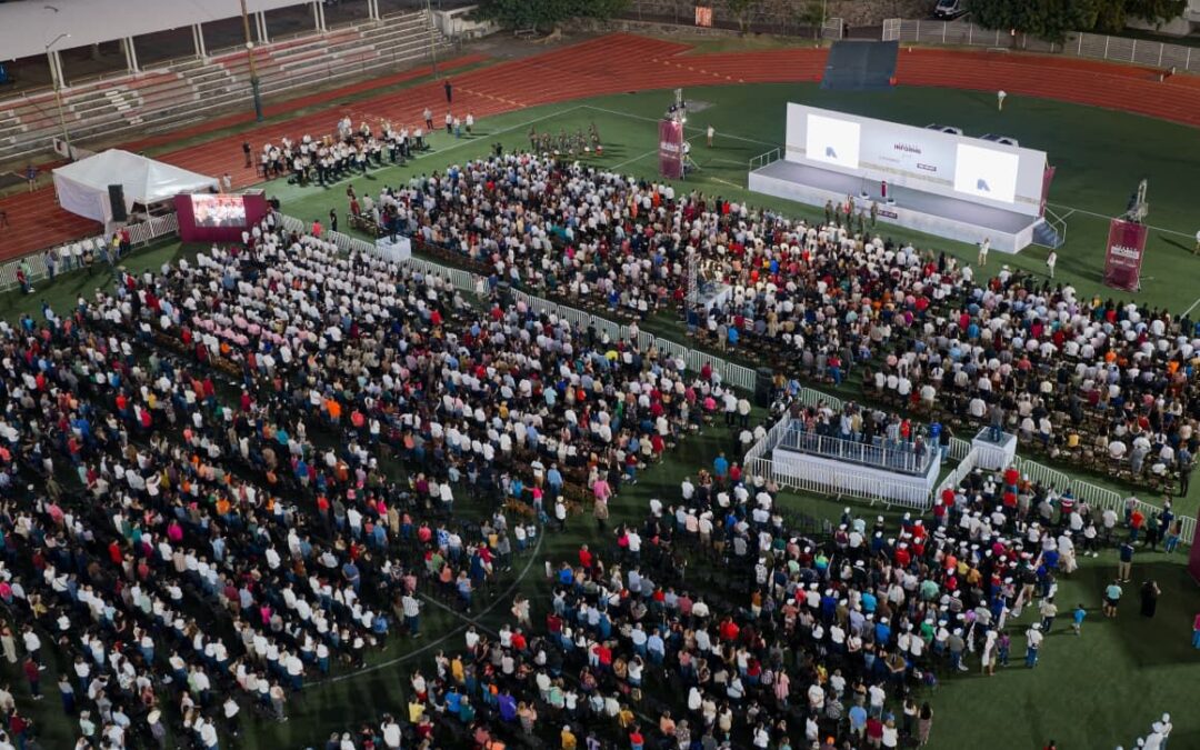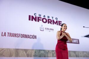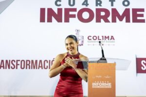 La gobernadora Indira Vizcaíno Silva rindió su 4º Informe de Gobierno ante el pueblo colimense en la Unidad Deportiva ‘Morelos’; destacó que en cuatro años se ha invertido para tener más y mejores programas sociales y obra pública, ampliar derechos, para apoyar la educación, generar inclusión y tener avances en atención a la salud y la seguridad como en ningún otro sexenio, sin aumentar la deuda, con finanzas sanas y estables, gracias a la honestidad, responsabilidad y cuidando el dinero del pueblo.