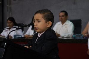 En su mensaje de bienvenida, la presidenta de la mesa directiva del Congreso, Yommira Barreto, manifestó este ejercicio es un espacio profundamente valioso en el que las niñas y niños de todos los rincones del estado, tienen la oportunidad de alzar la voz, compartir sus ideas, expresar las inquietudes y recordar a quienes hoy tienen la responsabilidad de legislar, que también desde la niñez se puede incidir en la transformación de la sociedad.