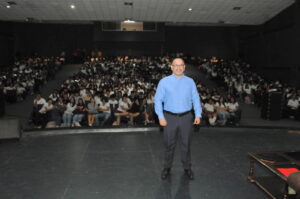 Dictó la conferencia este miércoles 11 en el Paraninfo. Como el Bachillerato Uno es de los que tienen mayor matrícula en la Universidad, Bryan dio la misma conferencia dos veces, apoyado con psicólogas de su dependencia.