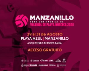 Manzanillo se prepara para recibir, del 29 al 31 de agosto, a las mejores duplas de voleibol de playa de Norteamérica, Centroamérica y el Caribe en el Norceca Beach Volleyball Continental Tour Manzanillo 2025, que tendrá lugar en la Playa Azul, a un costado de la Plaza Punto Bahía. Esta justa internacional reunirá a atletas de talla mundial en un ambiente único frente al mar, con música, sol y fiesta deportiva.