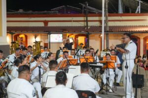 Villa de Álvarez, Col.- La presentación de la Banda Sinfónica de la Secretaría de Marina en el Jardín Independencia fue todo un éxito, pues congregó a cientos de villalvarenses que disfrutaron de más de una hora de música, en un espectáculo que emocionó al público asistente.