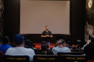 En la segunda sesión, el psicólogo Francisco Javier López Pineda coordinó una dinámica de gestión emocional, en donde las y los participantes realizaron ejercicios de interacción corporal, como la creación simbólica de una “máquina de escribir” en la espalda de otro integrante del grupo.
