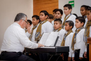El momento artístico del evento estuvo a cargo de los Niños Cantores de la Universidad de Colima, bajo la dirección del maestro Gabriel Frausto Zamora, quienes interpretaron tres piezas: Café Canon Alemán, cantado en español, Vida de Gitanos y Mi Capitán.