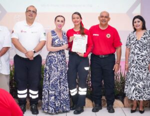 En su intervención, la Presidenta Tey Gutiérre Andrade señaló que en este programa, que fue puesto en marcha hace siete meses, se profesionalizaron 12 elementos de PC Municipal, acreditando la efectividad de los servicios que se brindan.