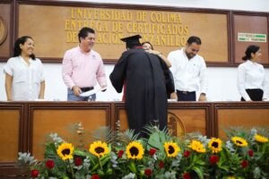 También dirigió un mensaje especial a las familias presentes, reconociendo su confianza en la Universidad de Colima: “Desde esta casa de estudios, hemos formado a sus hijas e hijos con herramientas para enfrentar cualquier desafío. Gracias por hacernos parte de sus historias”.