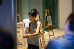 En la última parte del encuentro, el público pudo apreciar una selección de retratos elaborados por Sandra Uribe y entablar un diálogo directo con la artista sobre sus inquietudes y opiniones sobre la obra expuesta para este evento.