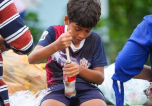 Katy Rodríguez, instructora de Ecología, explicó que el modelo utilizado en el Curso de Verano en El Chivato atrae a muchos niños y niñas por la mecánica de recolección de material para reciclar, que se les paga con Eco Bonos, los cuales pueden ser canjeables por juguetes, ropa, fruta picada y hielitos.