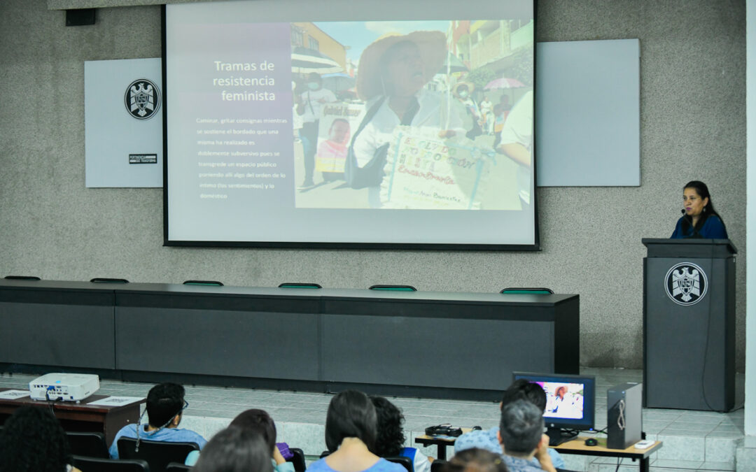Estrada Maldonado, quien tiene doctorado en psicología comunitaria, compartió con los y las estudiantes, su trabajo doctoral: “Madres Buscadoras de Guanajuato, Resistencia y Memoria en Contextos de Violencia”, en el que usó la perspectiva y la objetividad feminista.