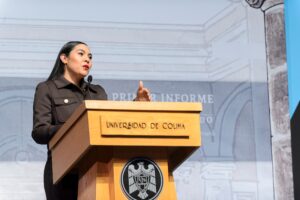 La gobernadora del Estado, Indira Vizcaíno, resaltó la importancia de la UdeC para la sociedad colimense. “Lo que pasa al interior de la Universidad no es un asunto lejano, es un asunto de interés primordial, pues aquí se forman profesionistas, aquí se produce conocimiento, aquí se impulsan la ciencia, la cultura, la reflexión crítica y el pensamiento que necesita nuestra sociedad para transformarse”.