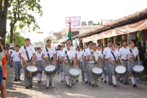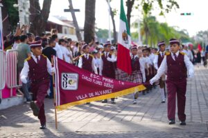 En la marcha participaron la Escolta y Banda de Guerra de la Dirección General de Seguridad Pública de Villa de Álvarez, autoridades del municipio y de la Secretaría de Educación y Cultura, supervisores de educación básica y funcionarios del Ayuntamiento.