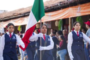 Previo al inicio del Desfile, el Ayuntamiento de Villa de Álvarez realizó una ceremonia cívica conmemorativa del Inicio de la Guerra Independentista, en la que la Presidenta Municipal Tey Gutiérrez hizo un llamado a la unidad como valor primordial que debe estar presente cada día en la vida de todas y todos.