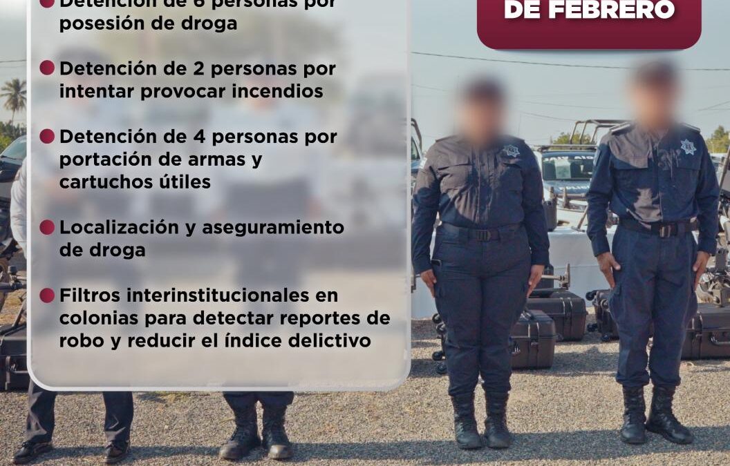 La Dirección de Seguridad Pública de Manzanillo informó que, como resultado de los patrullajes permanentes y operativos preventivos realizados en distintas colonias del municipio, se logró la detención de 6 personas, presuntamente relacionadas con delitos contra la salud, entre ellos el consumo y la posible distribución de sustancias ilícitas.