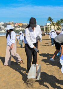 Este sábado, la presidenta municipal de Manzanillo, Rosa María Bayardo Cabrera, encabezó una jornada de limpieza en Playa Azul, la cuarta realizada en lo que va del año, en coordinación con el Comité de Playas Limpias y la participación de ciudadanas y ciudadanos.