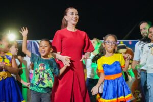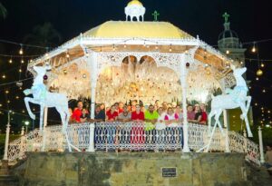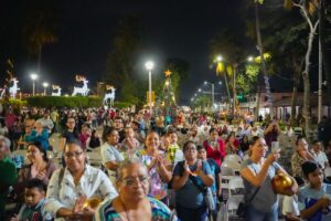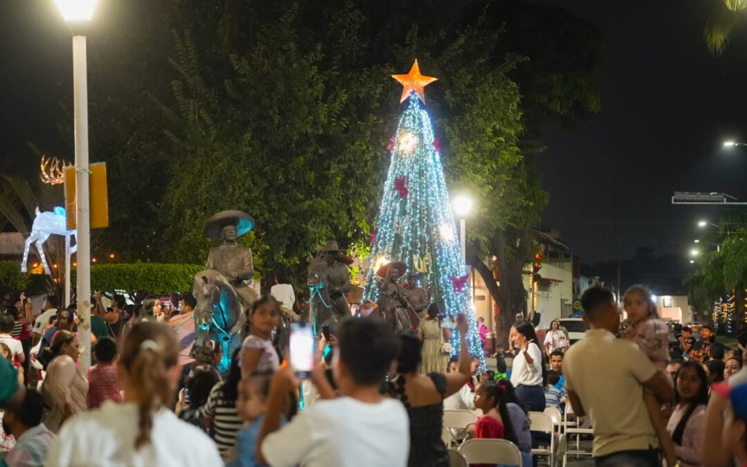 Villa de Álvarez, Col.- La Presidenta Tey Gutiérrez Andrade encabezó el encendido del Árbol de Navidad y de las luces de los arreglos navideños en el Jardín Principal de Villa de Álvarez, que sirvió de marco para realizar un festival en el que se presentó el Show de Betún.