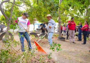Antes de iniciar las jornadas de limpieza en las que participaron 195 personas, entre vecinos y vecinas, funcionarios y funcionarias municipales, personal de la Dirección de Servicios Públicos y trabajadores sindicalizados del Ayuntamiento, la Alcaldesa Tey Gutiérrez Andrade agradeció la suma de voluntades para mantener limpia la Ciudad.