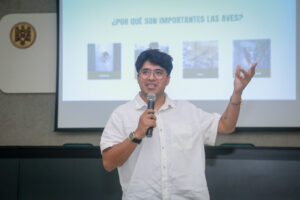 ++El biólogo marino Alan Reyes dio a conocer su proyecto “Pajareando ando” a estudiantes de Psicología.