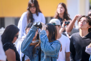 Luego de la charla, el biólogo y las y los estudiantes recorrieron parte del campus central para observar aves.
