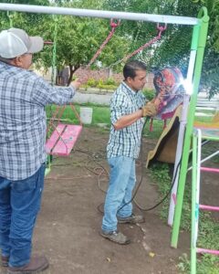 Con la Estrategia Entornos Seguros, el Ayuntamiento de Villa de Álvarez realizó acciones para el rescate de espacios públicos en las colonias La Comarca y Los Triángulos, lugares en los que se hicieron reparaciones en las áreas de juegos infantiles de sendos jardines.