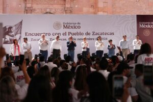 “Cuando vinimos a Zacatecas con el entonces Presidente López Obrador, cuando salimos de aquí me dijo: “Te quiero encargar dos cosas que ya no pude hacer, pero que fue mi compromiso con el pueblo de Zacatecas”. Y retomo aquí estas dos: la primera, la carretera de Osiris a Aguascalientes; y la otra, vamos a empezar a trabajar, ayer lo acordamos para que sea por consenso, la Presa Milpillas, con su acueducto”.