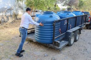 Acompañado de la Presidenta del Comité Estatal de Morena, Mitzuko Márquez; así como de las regidoras Elsa Aguirre, Rosario Ramírez y el Síndico, Noé Hernández; el Diputado Alvaro Lozano entregó 50 tinacos en Comala.
