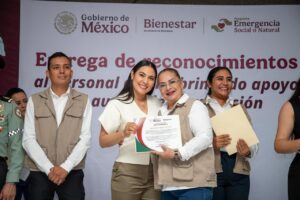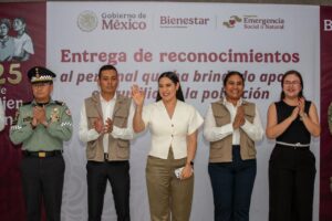 La tarde de este lunes, la gobernadora Indira Vizcaíno Silva encabezó la entrega de reconocimientos emitidos por la presidenta de México, Claudia Sheinbaum Pardo, a personal de diversas dependencias del Gobierno del Estado de Colima, que ha brindado apoyo en auxilio de la población en diversas entidades de la República Mexicana, afectadas por emergencias, como Hidalgo, Sonora, Sinaloa, Veracruz, Jalisco y Michoacán.