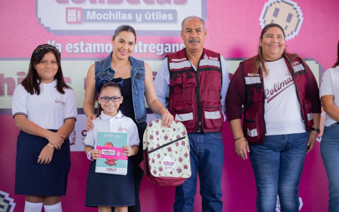 Este martes, la gobernadora de Colima, Indira Vizcaíno Silva, visitó la escuela primaria Cuauhtémoc, en Tecomán, para entregar 351 paquetes de ColiBecas Mochilas y Útiles escolares gratuitos, programa que sólo en ese municipio beneficiará a más de 15 mil 300 estudiantes de preescolares y primarias públicas, de los más 80 mil que lo recibirán a nivel estatal.