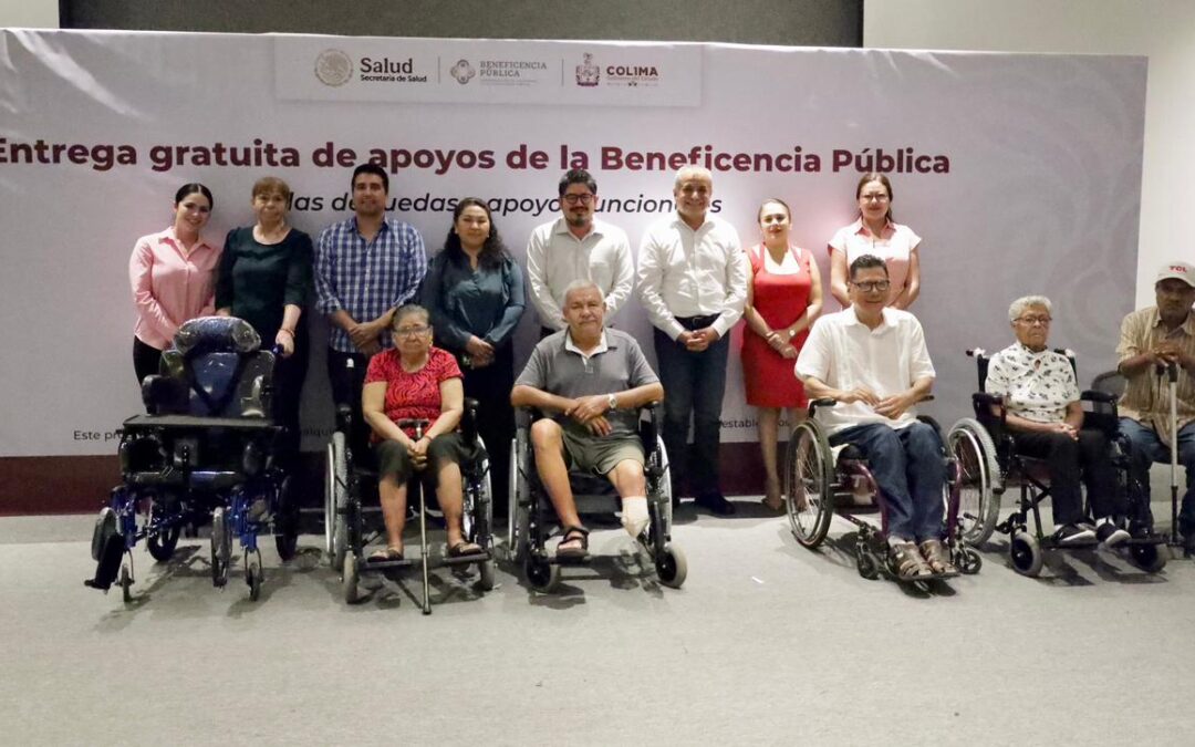 El Gobierno del Estado de Colima, a través de las secretarías de Salud y de Desarrollo Económico (Sedeco), llevó a cabo este viernes una nueva entrega de apoyos gratuitos del Patrimonio de la Beneficencia Pública, consistente en 330 apoyos funcionales, a igual número de personas beneficiarias de sectores más vulnerables de la entidad; para estos apoyos -sillas de ruedas, bastones, muletas y andaderas- se realizó una inversión de un millón 228 mil pesos.
