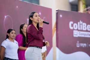 La secretaria de Bienestar, Inclusión Social y Mujeres, Viridiana Valencia Vargas, mencionó que Colima es la única entidad del país que gracias al programa #ColiBecas entrega computadoras a las y los estudiantes, por lo que les pidió valorar esta herramienta tecnológica que se puede otorgar gracias al manejo honesto de los recursos públicos.