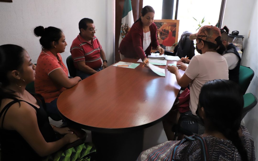 Como en cada ocasión para entrega de los apoyos sociales, Griselda Martínez asistió a las y los beneficiarios al llenado de la documentación correspondiente, y también, apoyó a las familias con despensas de productos de la canasta básica.