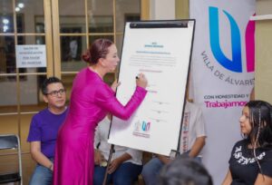 Susan Sánchez Sánchez, maestra de danza e integrante del Comité de Participación Social, encargado de vigilar la correcta ejecución de recursos en la obra, agradeció a la Presidenta Tey Gutiérrez por el compromiso que ha tenido en el fomento de las actividades culturales y artísticas y por la rehabilitación del Salón de Danza de la Casa de la Cultura de Villa de Álvarez, obra muy necesaria para las distintas disciplinas, cuyo piso se daña por la propia actividad dancística.