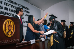 Dijo también que, al egresar como profesionales en la enseñanza de lenguas, poseen las herramientas que los convierten en ciudadanos globales capaces de tender puentes entre culturas, generar diálogo y contribuir al entendimiento en un mundo cada vez más interconectado. “Estamos seguros de que ustedes serán ejemplo de ética y profesionalismo, y que sabrán mantener y fortalecer la confianza que la sociedad tiene en nuestra casa de estudios”.