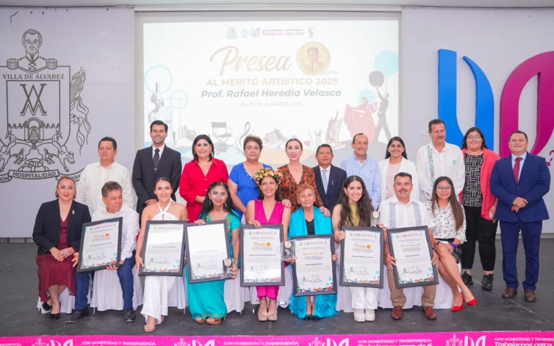 Villa de Álvarez, Col.- En Sesión Solemne del Cabildo de Villa de Álvarez, la Presidenta Tey Gutiérrez Andrade, el Síndico y las y los Regidores entregaron la Presea al Mérito Artístico “Profesor Rafael Heredia Velasco”, a lo más destacado de la cultura y las artes en el municipio durante el año 2025.