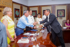 El rector de la Universidad de Colima, Christian Torres Ortiz Zermeño, entregó este viernes las constancias de nombramiento como Profesor(a) de Tiempo Completo (PTC) a cinco jóvenes que trabajarán en las facultades de Ciencias Marinas, Ciencias Políticas y Sociales, Pedagogía y Trabajo Social, y que debieron competir contra más de 70 aspirantes y ser evaluados por una comisión de pares académicos.