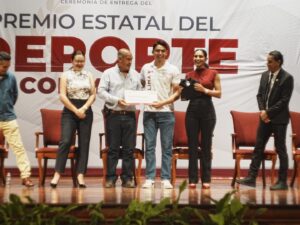 El ciclista José Emilio Rodríguez Delgado, el balonmanista Manuel Rivas Zazueta, la deportista paralímpica Yaretzi Janeth Cristóbal Santana, la voleibolista Naomi Cruz Toledo y el entrenador de balonmano Manuel Alejandro Chávez Valencia, recibieron la tarde de este miércoles en el teatro Hidalgo, de parte del Gobierno del Estado de Colima, el Premio Estatal del Deporte 2025, galardón otorgado a las y los mejores atletas estatales, en reconocimiento a sus logros durante el periodo de octubre 2024-2025.