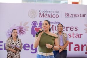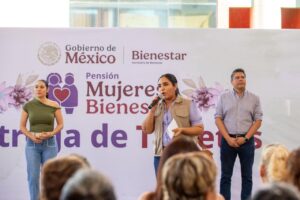 Previamente, la delegada de los Programas del Bienestar del Gobierno de México, María del Rosario Silva Verduzco, recordó que Claudia Sheinbaum dijo que al llegar ella a la Presidencia de México, llegaban todas las mujeres; dijo que la Pensión Mujeres Bienestar es para quienes tienen de 60 a 64 años de edad como apoyo y reconocimiento a todas las tareas que han venido realizando en su hogar como cuidadoras, como protectoras, sin distinción alguna, con el hecho de ser mujer mexicana y tener 60 años de edad.