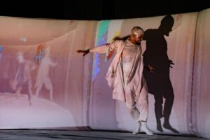 Estrenado en Montevideo Uruguay en 2023, este unipersonal interdisciplinario toma elementos de la danza y teatro, y usa el cuerpo como principal recurso escénico, para hablar sobre el duelo migratorio que padecen los pueblos que han tenido que migrar por obligación, e invita a reflexionar sobre conceptos como ‘frontera’ y ‘otredad’. Es una propuesta inmersiva que se vale de proyecciones multimedia y tecnologías interactivas para hacer al público parte de la construcción estética de la obra.