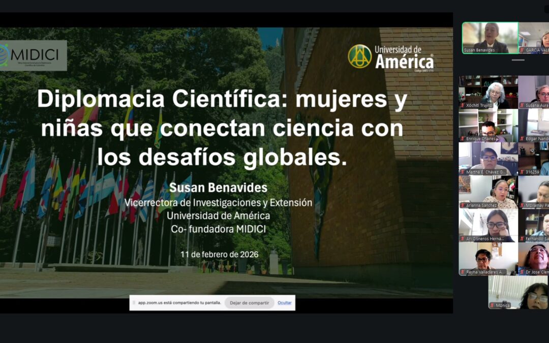 Como parte de la conmemoración por el Día Internacional de la Mujer y la Niña en la Ciencia la Universidad de Colima, a través de la Coordinación General de Investigación, llevó a cabo la conferencia virtual: “La diplomacia científica”, a cargo de Susana Margarita Benavides Trujillo, vicerrectora de Investigación y Extensión de la Universidad de América, Colombia. En su charla, habló sobre la importancia de construir puentes entre países, incluso en contextos de tensión o conflictos, a través de la evidencia científica.